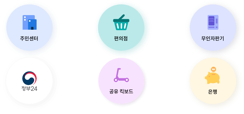 공공기관에서 민원처리 시, 은행에서 금융업무에 신분증이 필요할 때 편의점, 무인자판기 등에서 성인확인 필요 시, 온라인(정부 24 등)에서 신원확인, 앱으로 렌터카와 킥보드 대여 시 면허확인 등 신분증이 필요한 모든 곳에서 편리하게 사용할 수 있습니다.