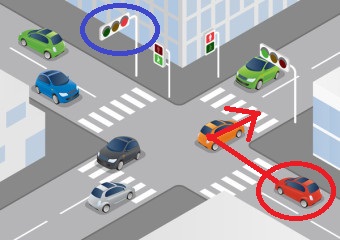 다음과 같이 신호등이 횡단보도에 차량 우회전 신호등이 있는 곳이라면 이해하기 쉽습니다. 우회전 신호등이 설치된 곳에서는, 우회전 녹색 화살표 신호에 따라 진행하면 됩니다. 직진 방향 신호등과 상관없이, 오른쪽에 설치된 우회전 신호등을 바라보면 됩니다. 빨간 불이면 멈춰야 하고, 파란불일 때 천천히 서행하시면 됩니다.